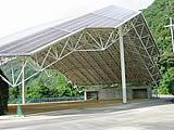 30×40m、バスケ2面(固定式ゴール)、バレー2面、バド6面、卓球20台、暗幕有 |